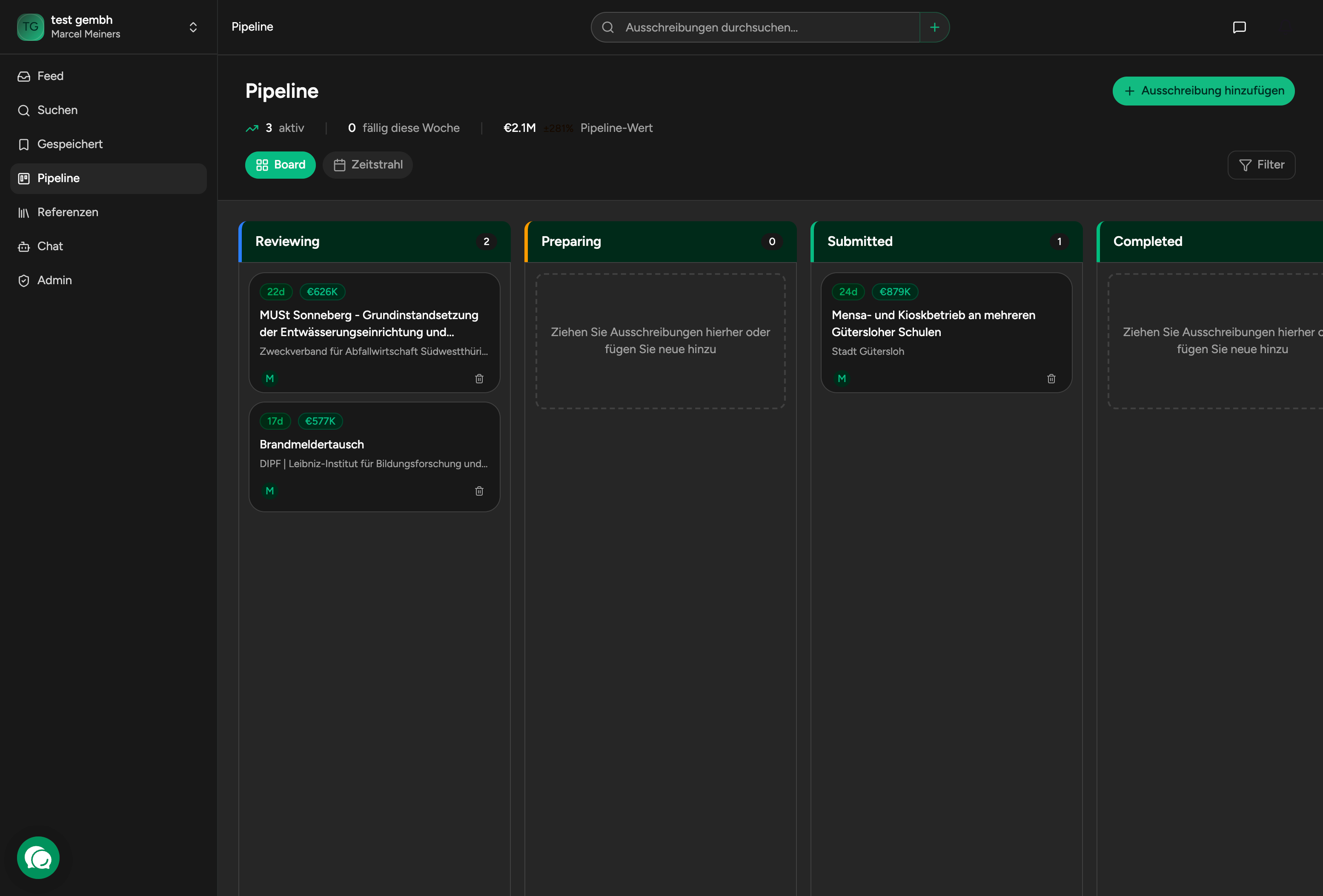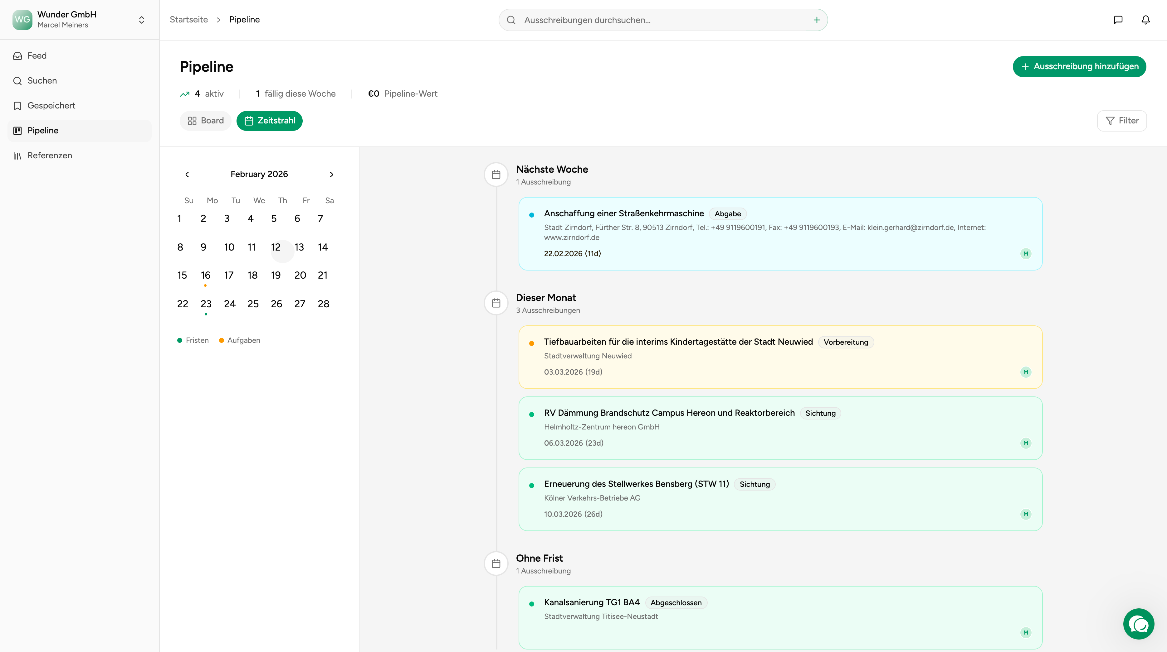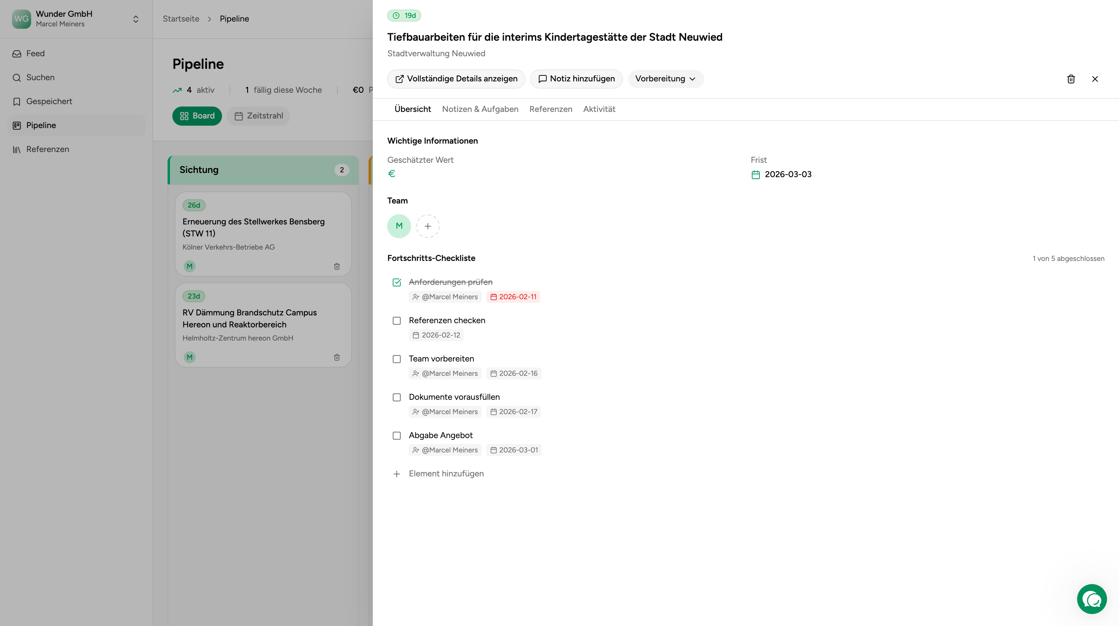 Aus dem Pipeline-Panel kannst du die volle Tender-Detailansicht oeffnen, ohne den Arbeitskontext zu verlieren.